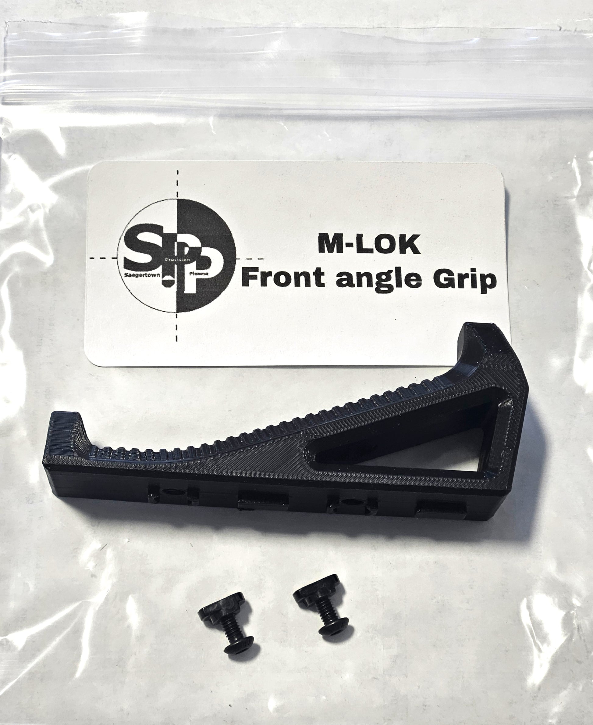 Forward angle grip for any M-lok front stock. Made of strong durable PLA, hex nuts and bolts included.